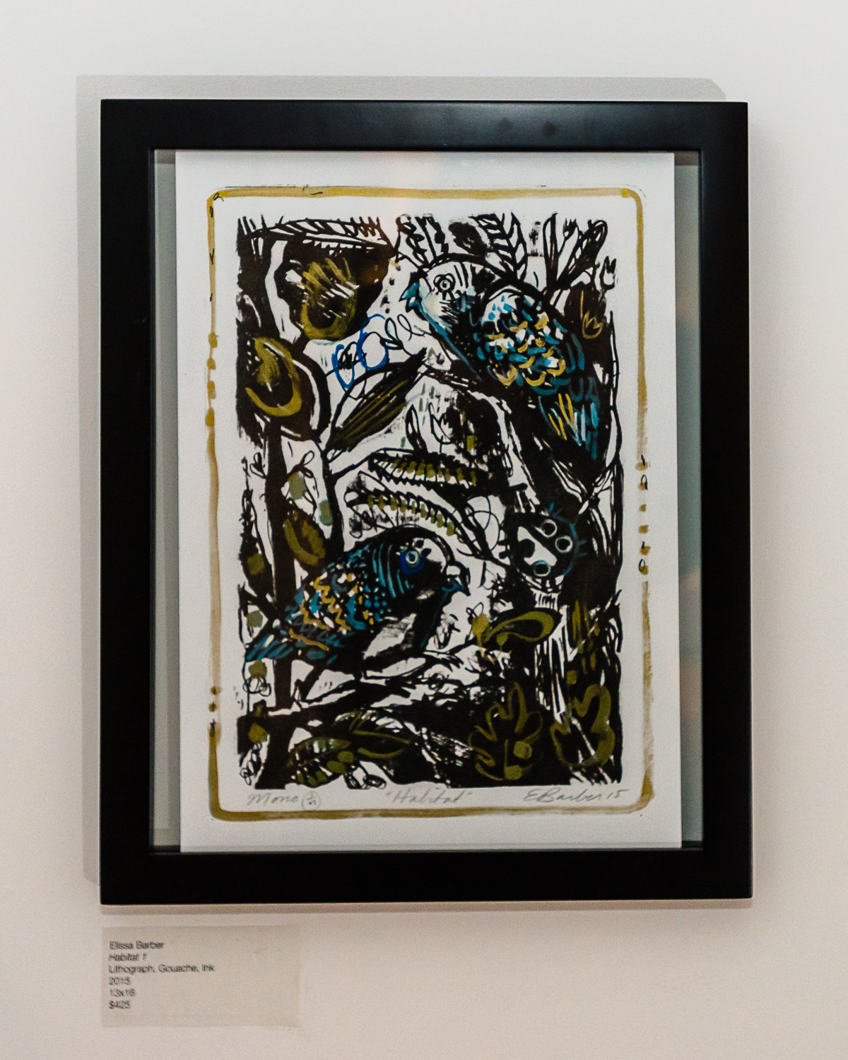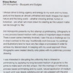 Elissa was interested in disrupting the uniformity that is inherent in printmaking by applying her long favored medium of gouache to the prints to make each one feel unique. Elissa felt this marriage of methodical, process based printmaking and her quick, natural application of medium to each print was deeply satisfying and she is very pleased with the end result – for her, each Monoprint is perfectly imperfect and full of life.