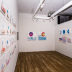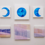 The work first began with Christina’s blue moons. She ripped apart paper only to piece them back together by layering the individual silk-screen pieces to represent the moon. Natasha’s inspiration came from her travels up North in the Yukon this past summer. Throughout her stay, the moon was an absent element in the usually busy sky. As a native Ontarian, the moon is always a steady ever-present entity in the night sky. This overtly noticeable absence became the connection and driving force behind the series for Natasha.