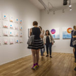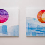 Just as the midnight sun shines in the north, A Conversation Between Contrasts plays on many opposing elements; destruction and creation, opaque and translucent, deliberate and organic, serene and violent. The artists work mimics conversation as the artwork travels back and forth over thousands of miles, influencing one another, just as the moon and the tide influence one another. Developing the complexity of multi-medium art, Christina and Natasha continue to speak to the idea of keeping friendship alive through collaboration and art, this time by having a dialogue through print and paint.