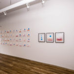 A Conversation Between Contrasts is Natasha and Christina’s second collaborative series together. This screen-print and paint collaborative series is an expansion on their previous exhibition, Peaks and Slopes, where the two created their artwork separately then combined silk-screened images to create new and expressive topographies. With both artists still working provinces apart – Natasha in Calgary, Alberta, and Christina in Hamilton, Ontario, both still aimed to create engaging new landscapes, but this time looking to challenge the scale of their pieces and materials. Can two minds create a coherent body of work while being not only separated by distance, but also by medium?