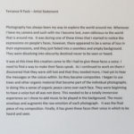 It was at this time this creation came to life I had to give these faces a voice. I need to find a way to make their faces speak. As I continued to work on them I discovered that they were still lost and that they needed more, I had yet to hear the messages or the voices within. So they became composites. I began to use trees and other organic material that became part of the individual photographs. In doing this a sense of organic peace came over each face. They were beginning to have a voice but all was not done. This needed to be a totally immersive experience so I chose to add music to be played in the background. The music envelops and augments the raw emotion of each photograph. It was the final piece of my composition. Finally, it has given these faces their voice in which to be heard and seen.